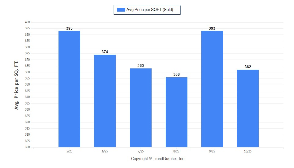 Average Price per Sq. Ft.: $333 ( 2.1% from last month, 2.6% from last year)
